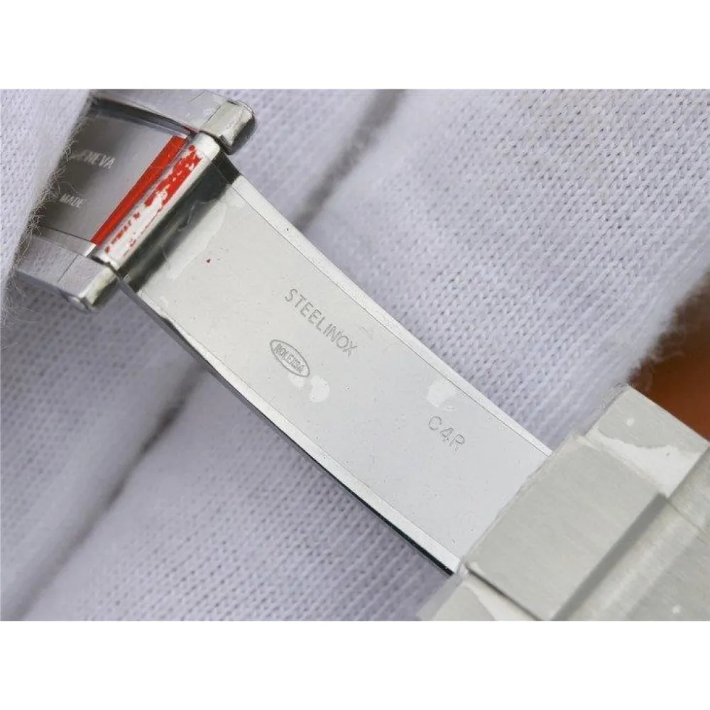 Стальной браслет Rolex Oyster из сатинированной стали 904L, с двойной раскладывающейся застёжкой Oysterlock и удлиняющим звеном Glidelock для одевания поверх гидрокостюма. Серийный номер и маркировка Rolex на конечных звеньях браслета.