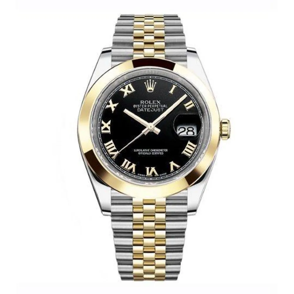 Чёрный, эмаль. Позолоченные, полированные римские часовые индексы и стрелки. Окно даты, расположенное в отметке на 15.00 часов под увеличительным окном 2,5. Гравировка маркировки Rolex и серийного номера Rolex на внутреннем ранте.