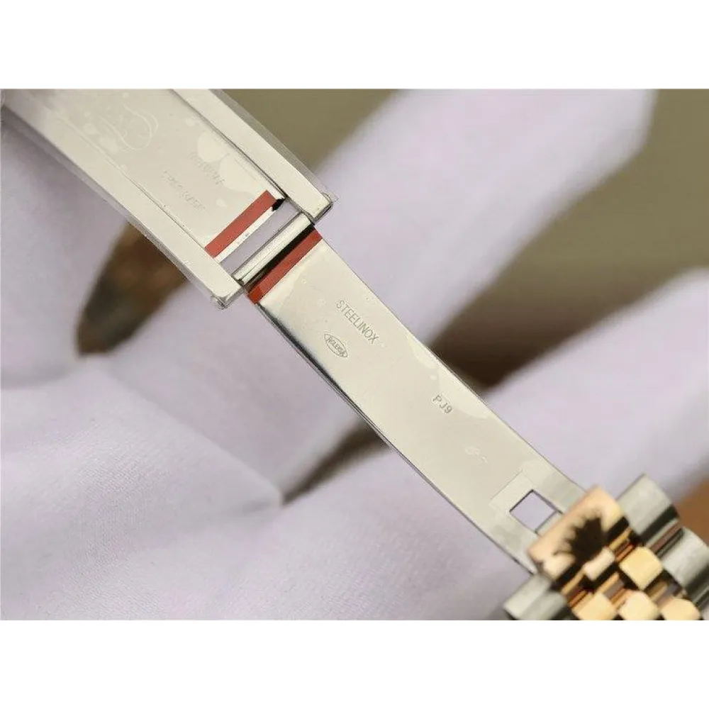 Oyster, Полированная сталь 904L, частично покрытая жёлтым золотом методом PVD.